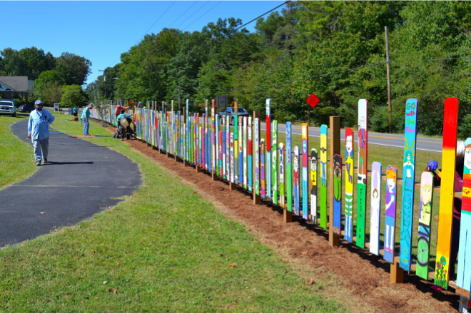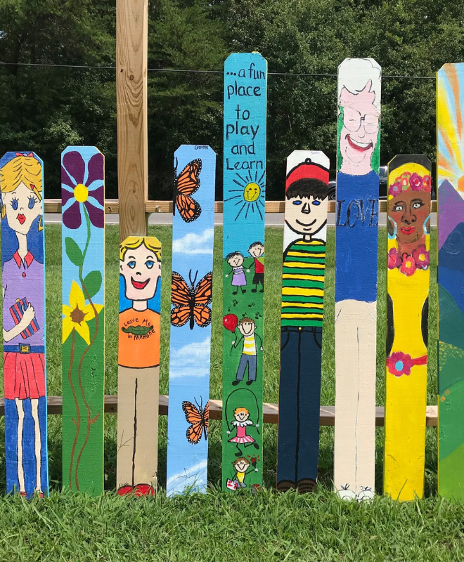 A highlight of the Pathway to Community is the colorful fence adorned with hundreds of hand-painted pickets, each crafted by local community members. Installed in September 2020, this whimsical fence is more than just an art installation—it’s a celebration of Mentone’s collaborative and welcoming spirit. As you stroll along the pathway, the bright and unique designs offer a joyful reminder of the power of art to bring people together.