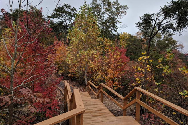 A favorite spot to witness the changing of the seasons is Little River Canyon National Preserve. The season begins with the brilliant reds of Woolly Sumac and extends for several weeks, typically peaking in late October and early November. Be sure to check out the stunning views of Little River Canyon from various overlooks, and take plenty of pictures to capture the magic of this season.