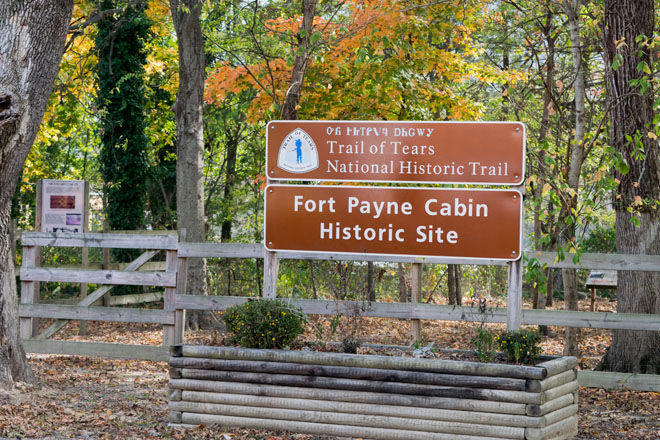 Dekalb Landmark’s property in Fort Payne, containing the old cabin foundation and chimney, is now an officially certified historic site on the Trail of Tears Historic Trail located at 106 4th Street in Downtown Fort Payne, Alabama.