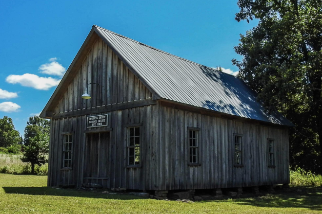 Afterward, descend the mountain toward Valley Head, where you’ll find the historic marker for Battelle, a once-thriving coal and iron ore town that now stands as a ghostly reminder of the past. From Valley Head, travel to Council Bluff School, the last remaining one-room schoolhouse in DeKalb County, where history comes alive through its enduring structure. Return to Fort Payne for dinner, where you can unwind and savor a meal at one of the town’s local restaurants, such as Rib Shak or Burrito Jalisco. Take time to reflect on your day of exploring the rich history of DeKalb County.