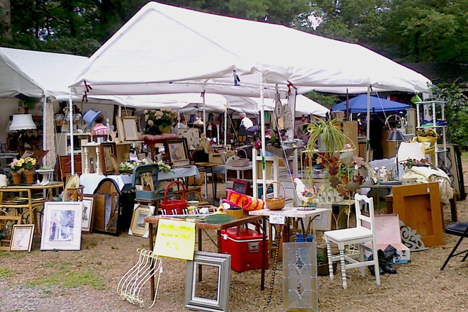 Almost anything! Popular is junk, antiques, collectibles, dishes and glassware, to farm implements, food items, produce and more. Some things to consider however are business licenses and health department permits. Each town has different rules and regulations so be sure to check with the local City Hall and Health Department where you set up your booth for any licenses or permits you may need to purchase.