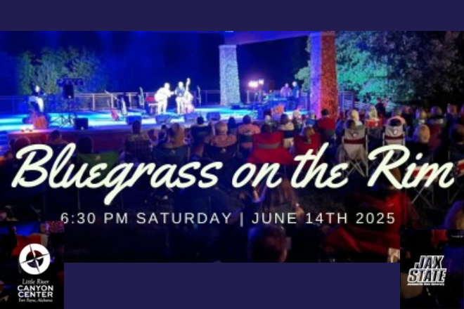 Get ready for toe-tappin’ rhythms and sweet harmonies at the 12th annual Bluegrass on the Rim concert at the Little River Canyon Center. Held outdoors under the stars, this event features acclaimed acts Kristy Cox & Grasstime and Foggy Hollow Review. Bring your lawn chairs or blankets and settle in for a night of soulful string music, with BBQ and other vendors on site. Coolers and leashed pets are welcome, making it the perfect laid-back summer evening. Tickets: $25 advance / $30 at the gate (students and kids receive discounted or free admission).