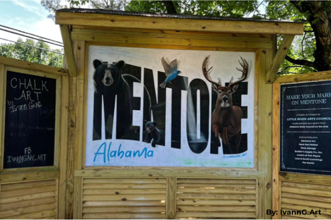 A dynamic and ever-changing addition to Mentone’s outdoor art scene, Make Your Mark on Mentone invites both artists and visitors to experience the magic of chalk art in a truly interactive way. Launched in 2024 by the Little River Arts Council, this project was created to celebrate the artistry of chalk while fostering community engagement with public art. What began as a temporary installation has now become a permanent feature near the Mentone Inn, serving as a canvas for talented artists to showcase their work.