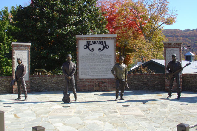 Historical markers commemorating Sequoyah’s invention of the Cherokee alphabet and the Willstown Mission are located in the Fort Payne City Park on Gault Avenue. Both are accessible by foot, close to the Alabama Band statues.